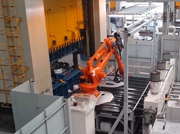 利用6軸機器人的柔性對不同產品的抓取,通過模塊化夾具,加快了生產換型和提高生產適應性,同時能柔性化適應全自動及人工單工序生產。